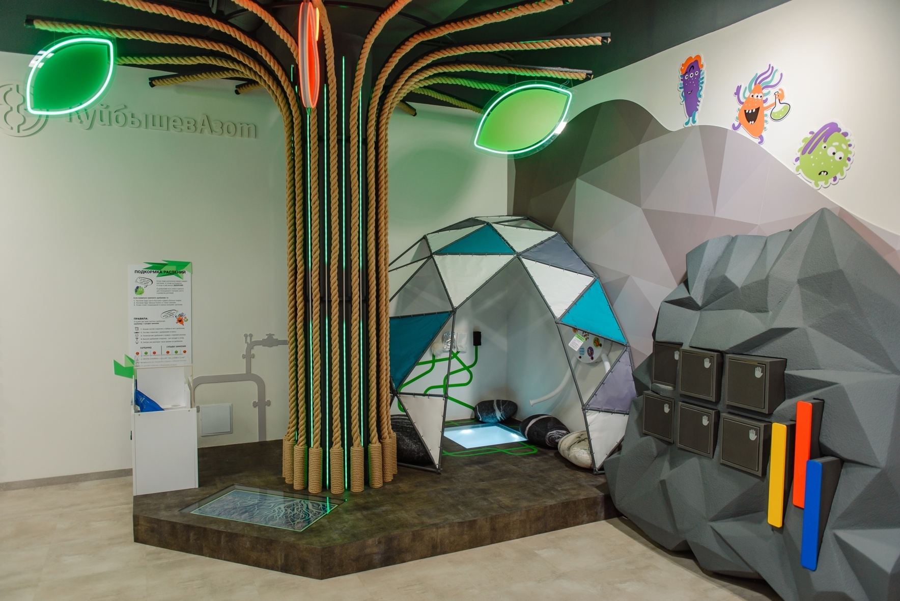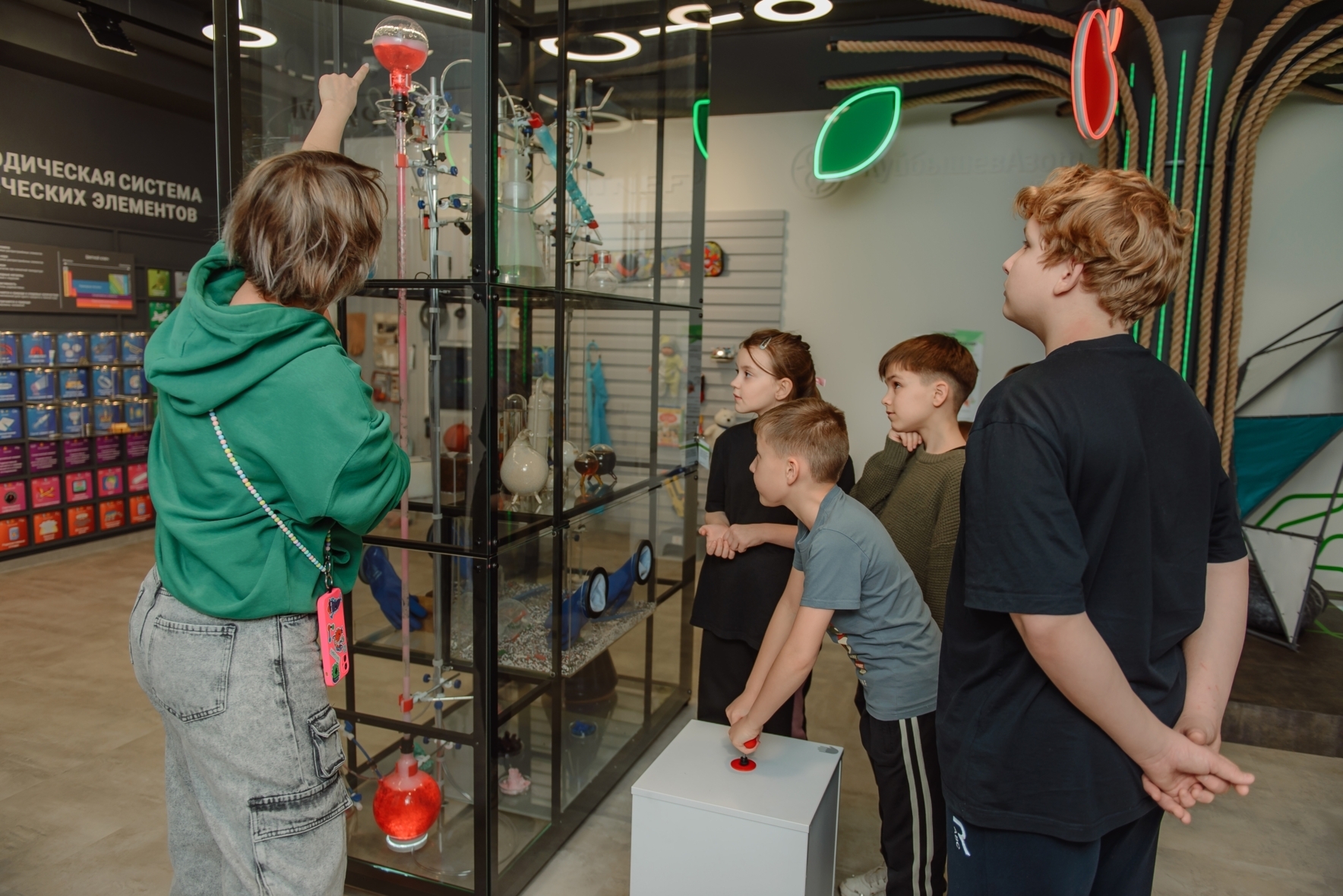 Нам удалось объединить краеведение и STEM-образование в музейной практике, чтобы занятия заинтересовали детей возраста 3-15 лет. Подход основывается на бинарной модели обучения, которая сочетает в себе научные дисциплины (в нашем случае химию и физику), технологии и инженерное дело с изучением городской истории. Этот подход мы подчеркнули двумя пространствами, наполненными собственными смыслами. Практические занятия с опытами и экспериментами проводятся в Лаборатории. А теория, рассказы о науке и городе ведутся на 50 кв. м выставочного пространства. Здесь расположились разделы: «Лаборатория», «Нефть», «Таблица Менделеева», «Химия вокруг нас», «Природа» и тайная комната – «Фотариум».