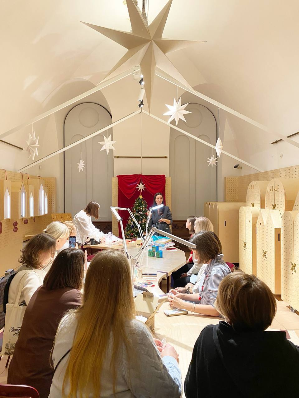 Мастерская доступна для участников музейно-образовательных программ, как для сборных, так и организованных групп, также для участников продолжительных абонементов. Используется по назначению, например, основная часть занятия проводится на выставках, а в мастерскую мы переходим для рукоделия. Иногда рукоделие сопровождается совместным пением, например, во время программы «Народный праздник. Святки» 3+ мы мастерим вифлеемскую звезду и поем колядки вместе с детьми и родителями.