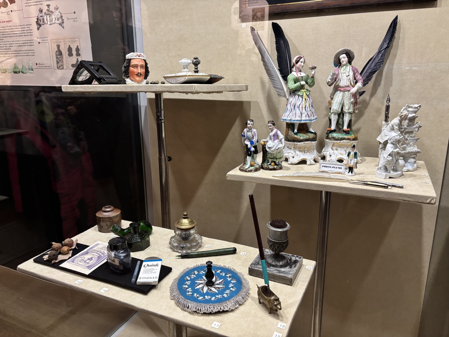 Рядом со статусными принадлежностями соседствуют и недорогие, массово выпускавшиеся на фабриках Европы и России в конце XIX - начале XX века, поскольку рост грамотности среди населения создавал на них спрос.