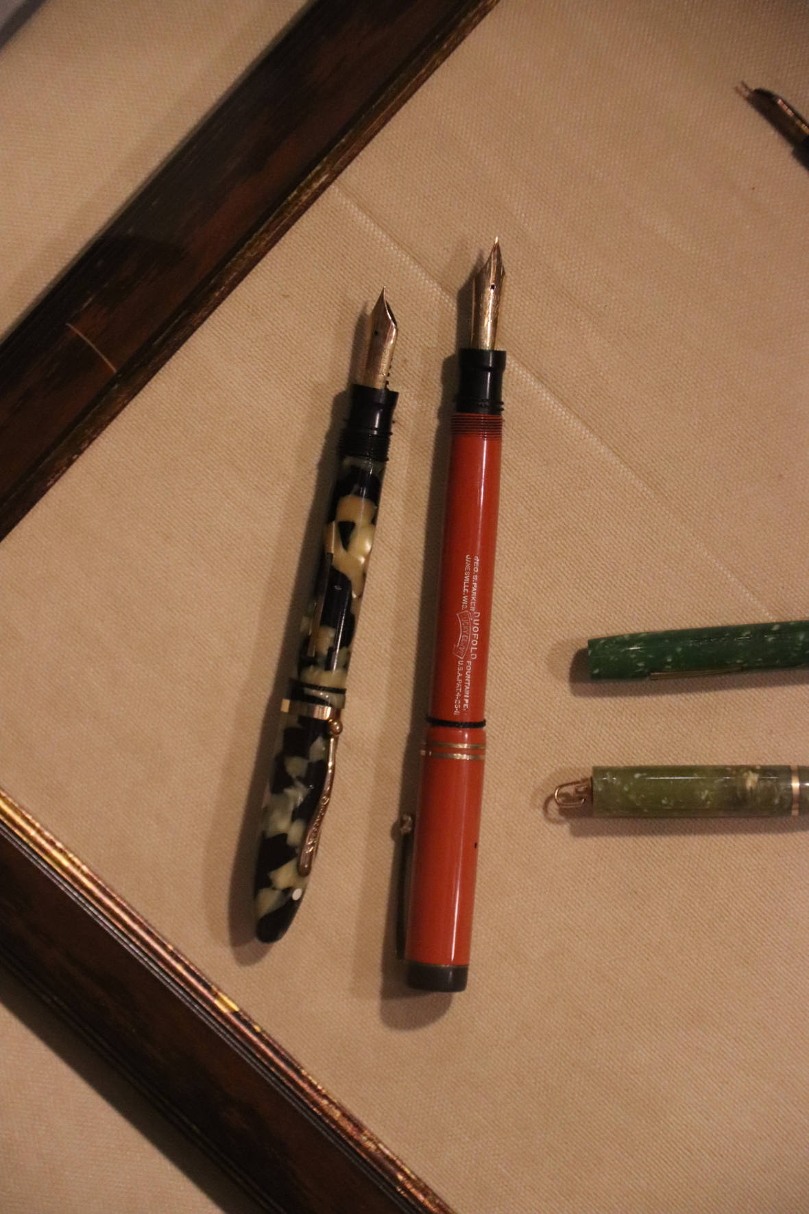 В XIX веке на смену гусиным перьям пришли металлические, и к началу XX века перьевая авторучка становится основным инструментом для письма чернилами. На экспозиции представлены легендарные авторучки первой половины XX века, выпускавшиеся ведущими мировыми компаниями - «Waterman», «Parker» и др.