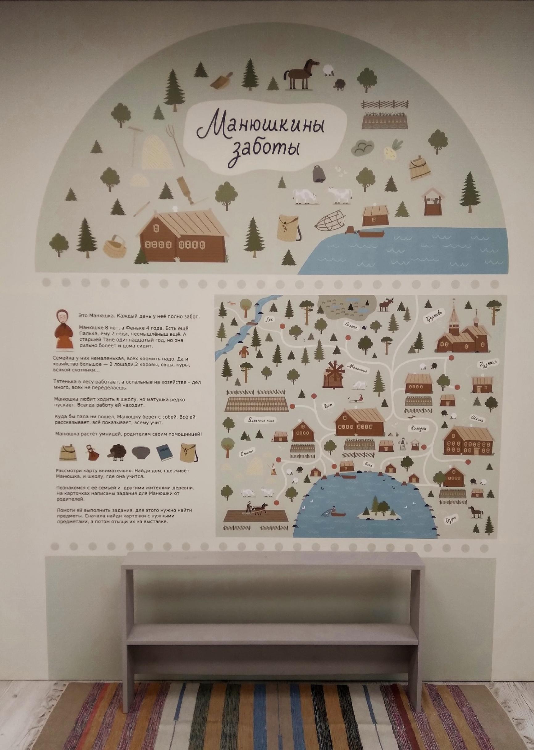 How did peasant children live 100 years ago? How did they work, study at school, and relate to their parents? How did they rest, and what games did they play? The new exhibition tells these stories. Visitors will find themselves in the space of a peasant house, in the forest, at haymaking, on fishing trips, and during fieldwork; they will hear lullabies and tales and play old-fashioned games. The main character is a peasant girl, Manyushka — her image will "come to life" and her voice will be heard at the exhibition. The project is based on the real life of Maria Stepanovna Prokina, whose childhood fell in the first quarter of the 20th century. The stories told by the heroine illustrate family relationships, the everyday routine of peasant life, school days and the leisure of children at the age of "coming to reason" (7–10 years). Together with Manyushka visitors will be able to travel back to the childhood of their great-great-great-grandmothers and "live through" part of their lives.