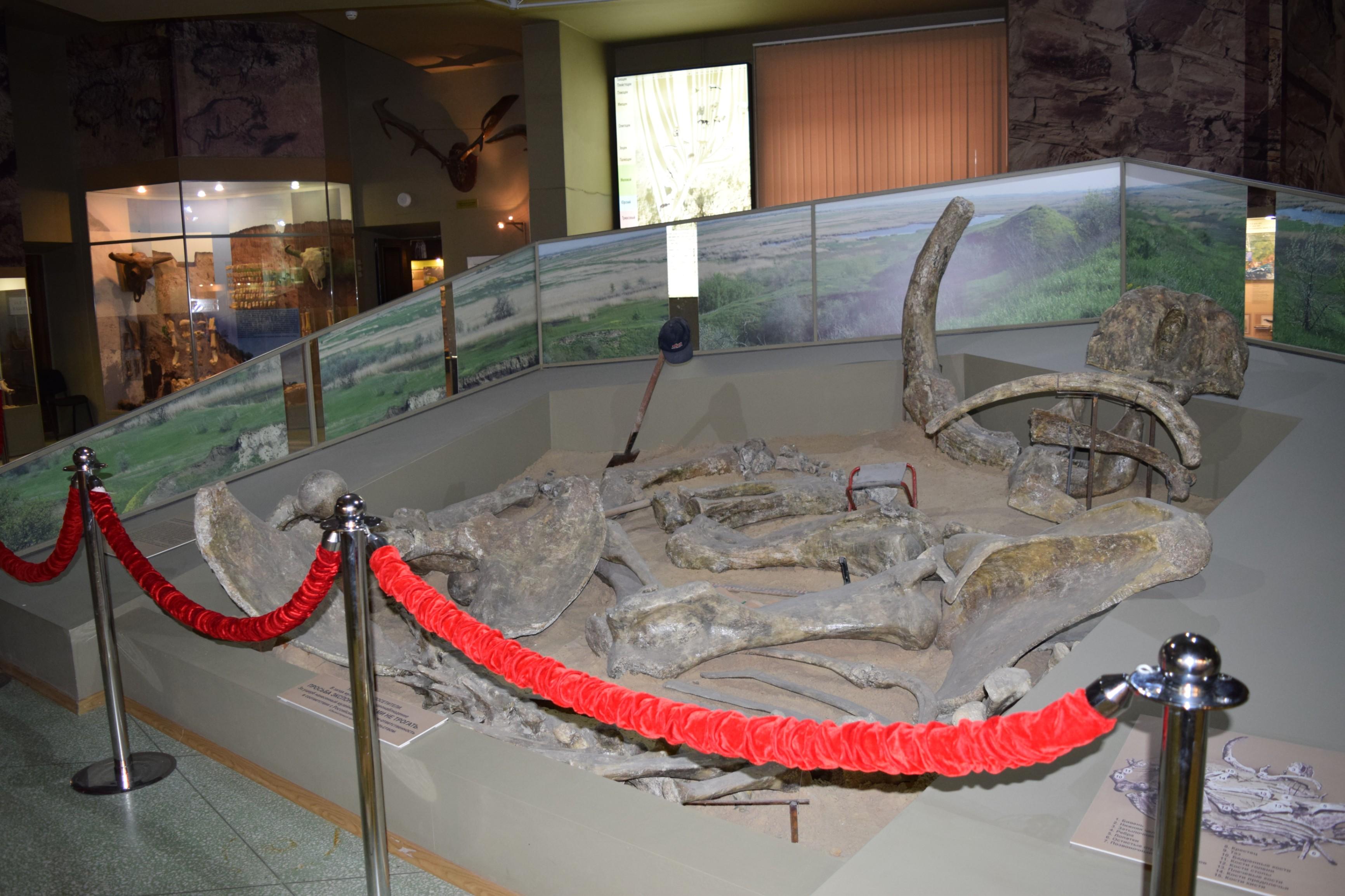 Экспозиция рассказывает об удивительных существах, населявших Землю в древности. В витринах выставлены отпечатки растений, окаменелости растений, моллюсков, беспозвоночных и позвоночных, обитавших на территории Северного Кавказа и Ростовской области. Здесь также можно узнать о полезных ископаемых палеозоя и мезозоя.Центральное место в зале занимает уникальный скелет древнего хоботного животного – динотерия Deinotherium giganteum. Этот гигант жил 5,5–6,5 миллионов лет назад. Кости найдены в Обуховском песчаном карьере под Новочеркасском в 1982 году и выставлены в том виде, в каком их обнаружили.Интерактивная часть экспозиции включает реплику ископаемого аммонита – древнего моллюска, жившего 400 миллионов лет назад.
