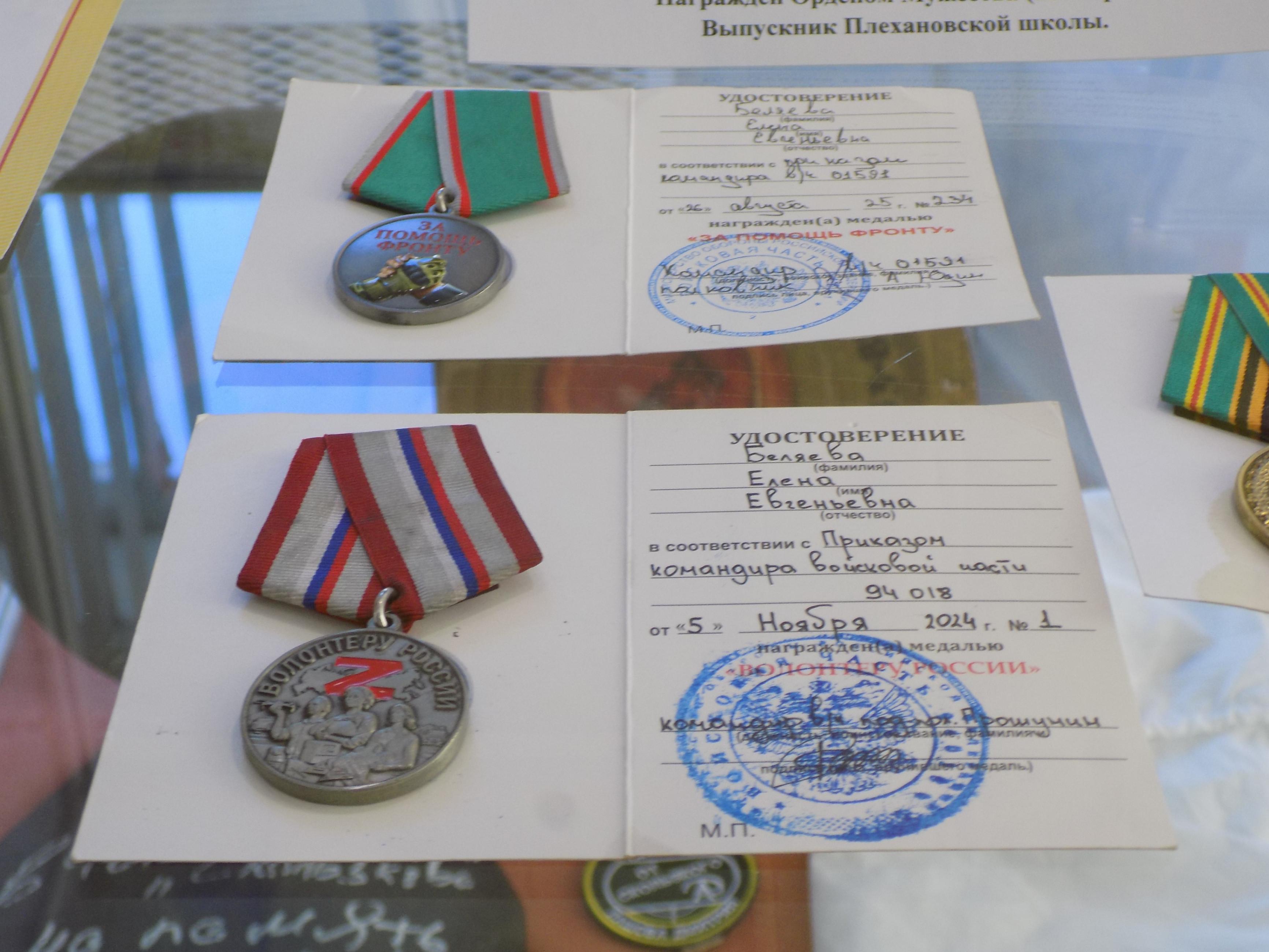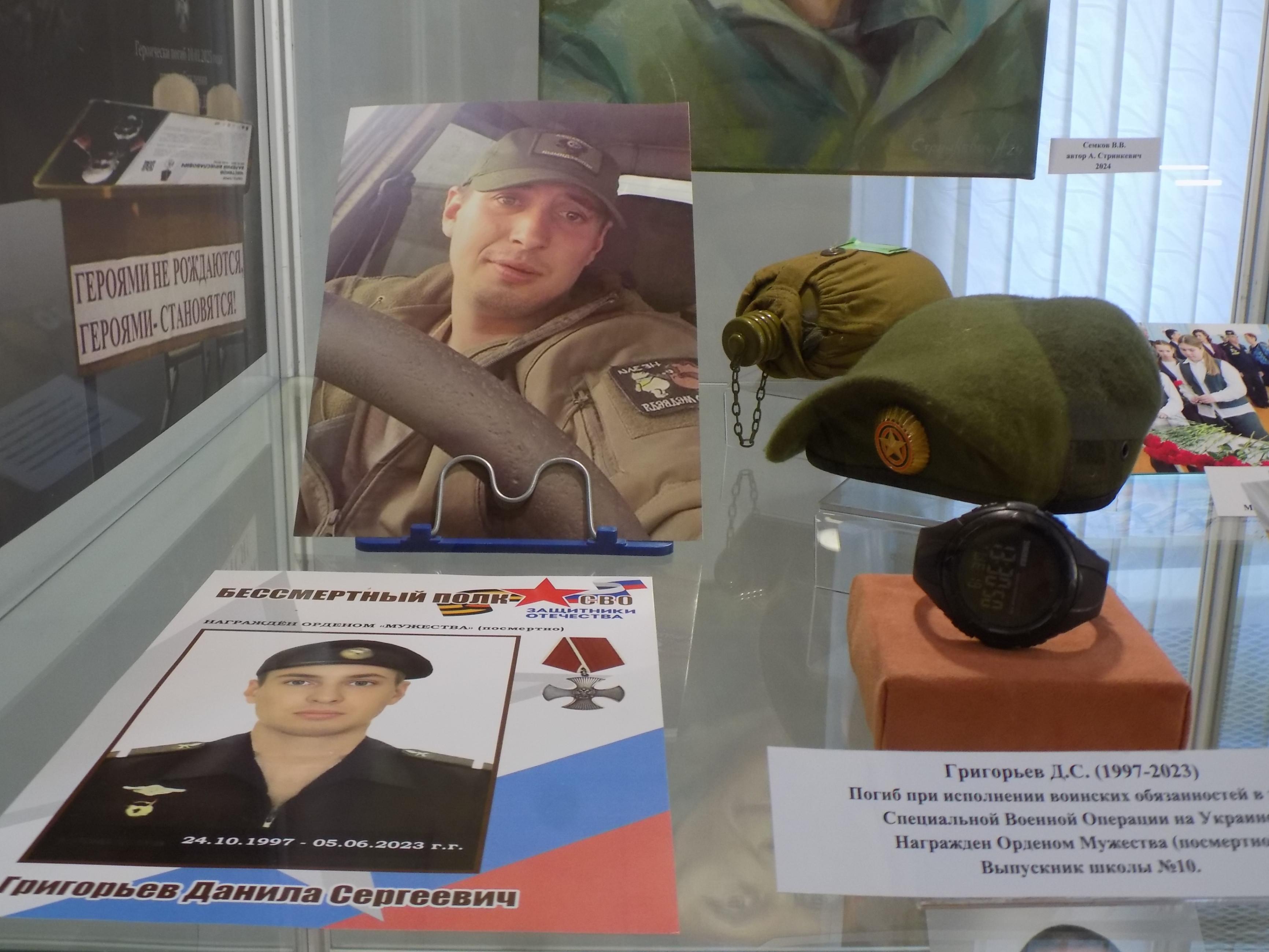 В Краеведческом музее открылась выставка «СВОих не бросаем! Победа Zа нами!». Материалы выставки рассказывают о кунгуряках, участниках Специальной Военной Операции на Украине, о волонтерском движении жителей Кунгурского муниципального округа в помощь СВО. На выставке представлены материалы погибших героев СВО. Даниил Григорьев (1997-2023), позывной «Тезка». Погиб при исполнении воинских обязанностей в зоне Специальной Военной Операции при освобождении с. Урожайное, ДНР. Награжден Орденом Мужества (посмертно). Выпускник школы № 10. Виталий Семков (1976-2025), участник контртеррористической операции на Северном Кавказе, Специальной Военной Операции на Украине. Позывной «Старый». Погиб при выполнении боевой задачи. Член Кунгурской организации «Союз ветеранов боевых действий «Братство». Павел Низгиренко (1981-2024), участник контртеррористической операции на Северном Кавказе (1999-2001) и Специальной Военной Операции на Украине. Дмитрий Лашов (1998-2023). Служил в горячих точках Сирии и Таджикистана. Позывной «Скользкий». Погиб при исполнении воинских обязанностей в зоне Специальной Военной Операции на Украине. Награжден Орденом Мужества (посмертно). Выпускник Плехановской школы. Его мама Елена Сапожникова-Беляева является создателем и руководителем Благотворительного фонда «Солдатам Урала». Фонд занимается поставками гуманитарной помощи за «ленточку». На выставке есть и ее материалы. На выставке представлены материалы, вернувшегося на родину после ранения Новокрещенных Д.А. ( позывной «Крест» ), участника контртеррористической операции на Северном Кавказе, Специальной Военной Операции на Украине, председателя Кунгурской организации «Союз ветеранов боевых действий «Братство». Организатора и активного участника мероприятий по патриотическому воспитанию молодежи. Также материалы находящихся в зоне боевых действий СВО Сергея Фофанова из с. Калинино, майора Евгения Медведского (позывной «Медведь»). Евгений Медведский передал в фонд музея не только свои личные материалы и вещи, но и трофеи с фронта. На выставке показаны документы, вещи, вооружение ВСУ. Большую помощь фронту оказывает волонтерское движение жителей Кунгурского муниципального округа. Материалы выставки рассказывают об этом движении. «Шьем для наших» – это первая волонтерская группа, созданная в 2022 г. Бессменные волонтеры группы Екатерина Новикова и Анна Старовойтова: «Мы шьем и вяжем различные изделия, льем окопные свечи, охотничьи спички, плетем масксети, собираем гуманитарную помощь и самостоятельно отвозим «за ленту» передавая из рук в руки». Татьяна Танкова, организатор волонтерской группы «С теплом и любовью из Кунгура», занимается производством сухой еды для бойцов СВО. Волонтер Мария Пирожникова (п. Голдыревский Кунгурского МО) производит сладкую гуманитарную помощь бойцам СВО. Их продукция представлена на выставке. Инициативная волонтерская группа в составе Плотникова А.В., Плотниковой Г. А., Зозулиной Т.И. занимаются сбором и доставкой гуманитарной помощи, изготовлением маскировочных сетей в 8 пунктах Кунгурского МО: Мериново – Болотово, Иоанно-Предтеченский женский монастырь, Кинделино, Насадка, Зуята, Бырма, Неволино, Зарубино и в с. Посад Кишертского района. Балберина Е.Н. («Поддержим наших») организует сбор и доставку на своей машине военной техники и гум