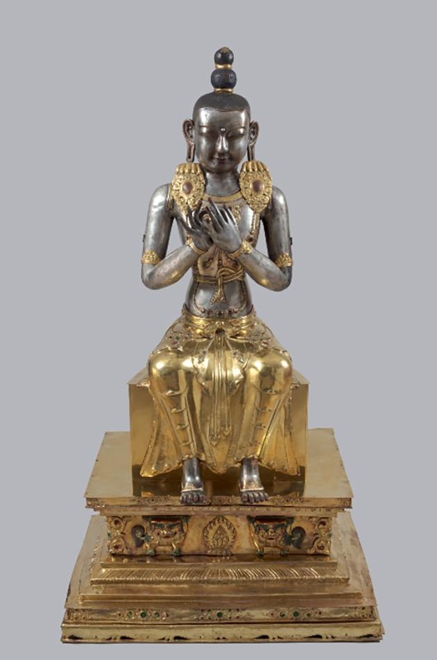 Выставка, приуроченная к 110-летию Санкт-Петербургского буддийского храма «Дацан Гунзэчойнэй», посвящена тибетскому буддийскому искусству, богатая коллекция которого хранится в Эрмитаже.На экспозиции будут представлены также редкостные предметы, непосредственно связанные с историей дацана и его первого настоятеля. Известно, что в начале ХХ века, во время так называемой Большой игры, между Британской и Российской империями развернулось геополитическое соперничество за господство в Центральной Азии, в частности в Тибете. Тибет к тому времени создал высочайшую духовную буддийскую культуру и определял настроения в странах, исповедовавших тибетский буддизм. России удалось не допустить английского присутствия в Тибете и сохранить свои интересы в регионе. В 1900 году представитель далай-ламы XIII в России Агван Доржиев получил разрешение на строительство буддийского храма в Санкт-Петербурге. Строительство храма началось после слов императора Николая II: «Буддисты России находятся под защитой двуглавого орла». На выставке можно будет увидеть уникальные серебряные скульптуры, происходящие из личных покоев царской семьи. Эти предметы подносили в качестве даров представители бурятской знати и духовенства, а также далай-лама XIII через Агвана Доржиева, основателя буддийского храма в Санкт-Петербурге. На выставке будут представлены уникальные произведения буддийской скульптуры и живописи, ритуальные предметы и маски буддийской мистерии Цам из Монголии, Ладакха и Сиккима. Кроме того, будет экспонироваться один из костюмов исполнителя мистерии Цам, включающий костяной передник и браслеты.