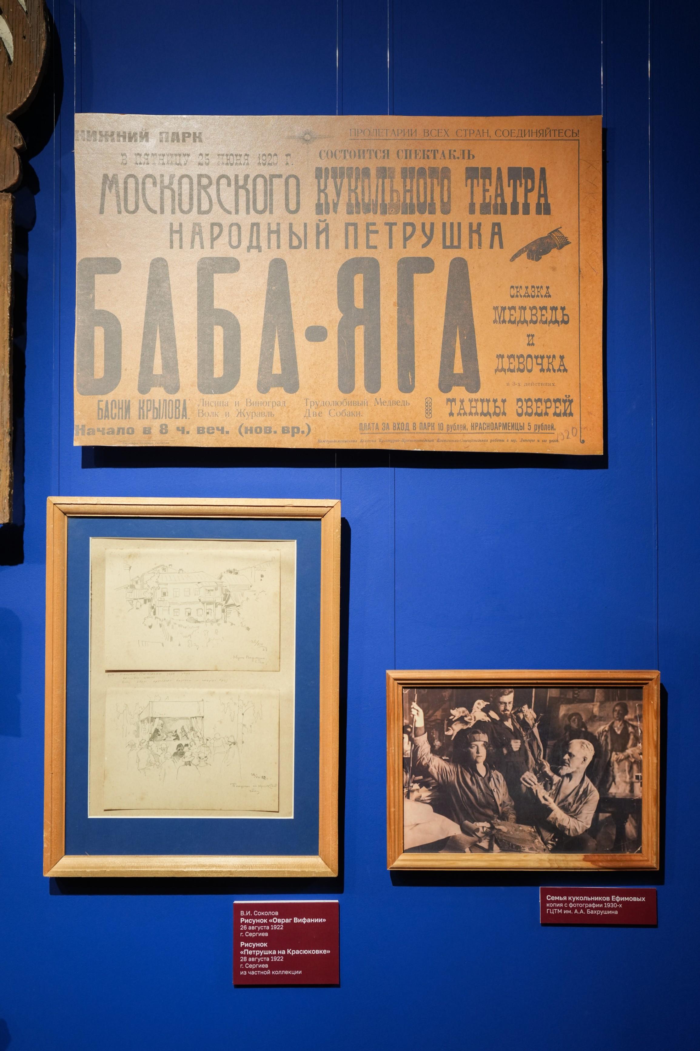 Выставка является совместным юбилейным проектом шести музеев: Сергиево-Посадского музея-заповедника, Государственного центрального театрального музея имени А. А. Бахрушина, Вяземского историко-краеведческого музея, Государственного историко-культурного и природного музея-заповедника А. С. Грибоедова «Хмелита», Ярославского художественного музея «Губернаторский дом», Ковровского историко-мемориального музея. Партнерами стали Московский театр кукол, частные коллекционеры и потомки ополченцев.Экспозиция охватывает несколько зон. Все зоны взаимосвязаны между собой и каждая носит свою смысловую нагрузку: во входной зоне можно рассмотреть плакаты военных лет, на первом этаже – посетить небольшой, но уютный кинозал, а затем пройти на второй этаж, чтобы познакомиться с вкладом загорчан в Великую Победу. Сердцем выставочного проекта является зал, посвященный артистам-кукольникам, художникам, мастерам художественных промыслов. Центральное место в зале занимают фронтовые куклы разных мастеров, есть среди них любимец публики – Петрушка. Эта кукла в военные годы стала самым популярным героем военных постановок.