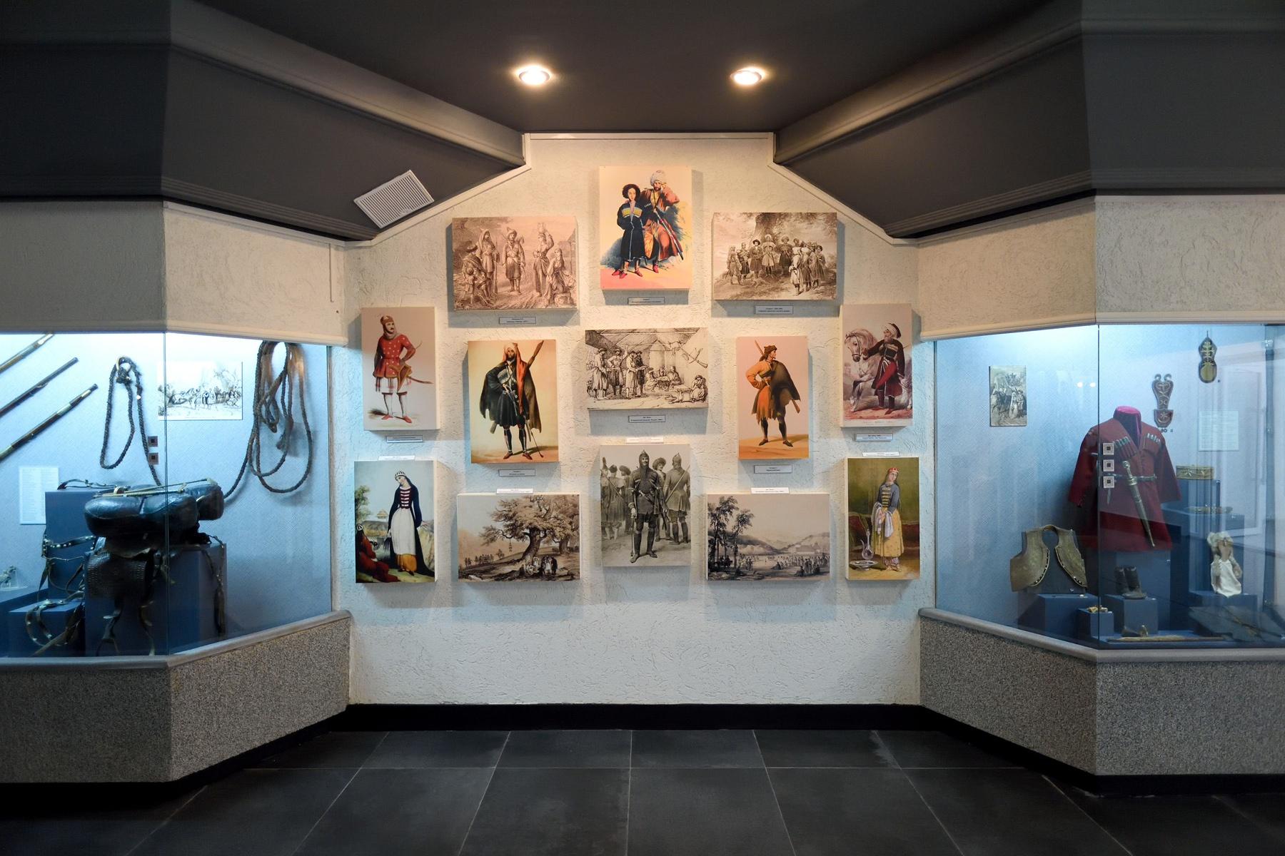 На выставке представлены национальные костюмы, созданные в позапрошлом столетии, старинные предметы быта: сундуки, седла, изысканное адыгское золотое шитье, драгоценные украшения, мастерское оружие, холодное и огнестрельное. А некоторые из экспонатов, например, скамья для старинной народной игры, сохранились до настоящего времени в единственном экземпляре. Посетители узнают множество традиций и обычаев, примет и верований адыгов (черкесов): почему адыгские столы всегда были круглыми, какие ритуалы было принято проводить перед охотой, звуки какого инструмента могли исцелять болезни и почему детям не дарили колыбели из бузины.