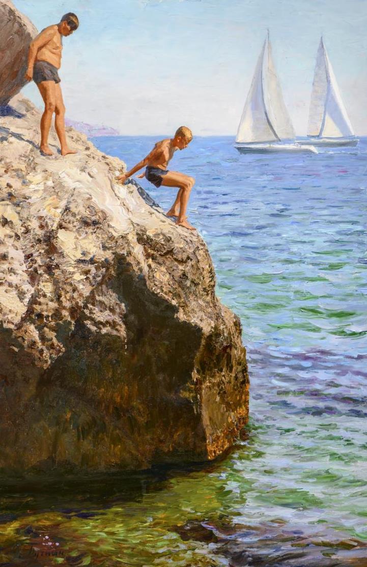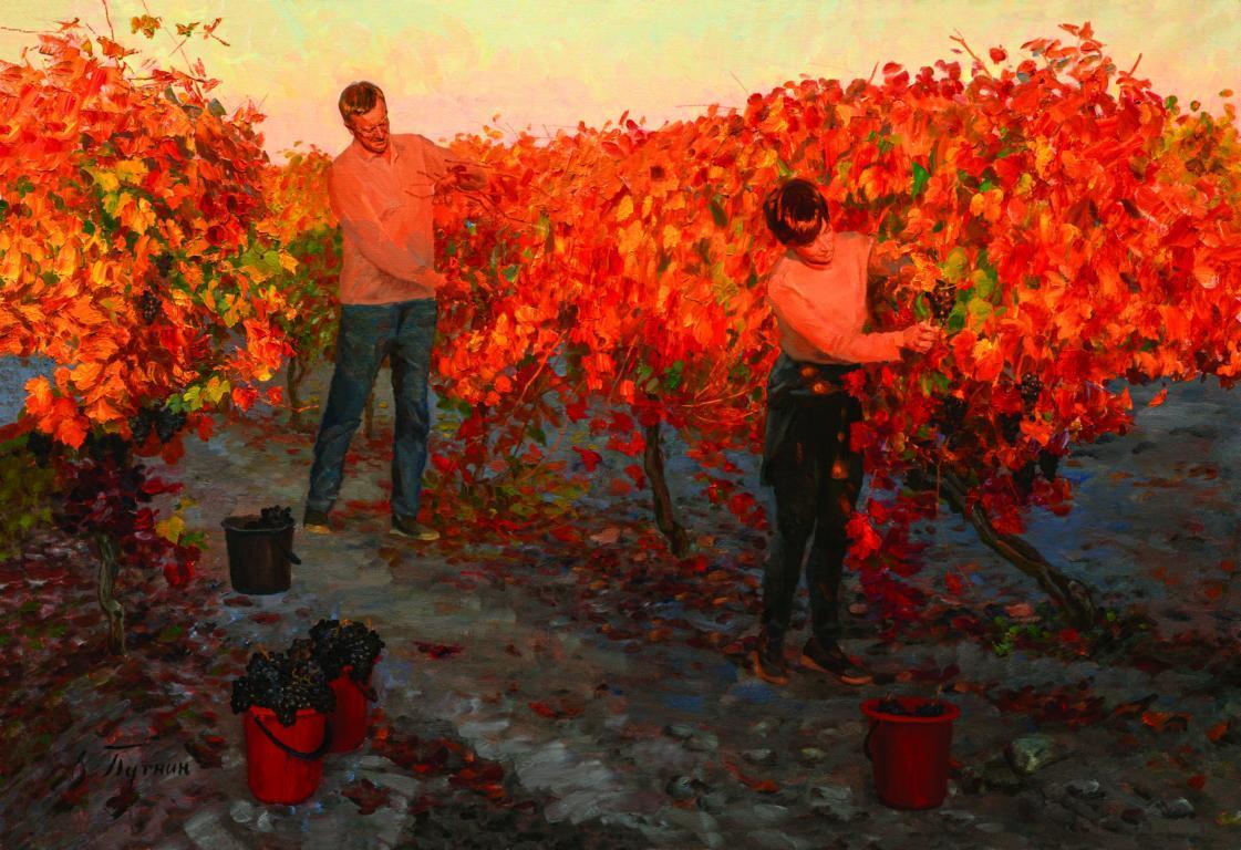 Академика Российской академии художеств О.Ю. Путнина можно по праву назвать ярым приверженцем пейзажа — страсть к этому жанру зародилась ещё в детстве. В работе он стремится к большим панорамным полотнам, которые полностью захватывают зрителя, делая его полноценным участником сюжета. Его интересуют метаморфозы естественного освещения через подвижные природные фактуры - туман, лёд, воду, снег, метель. Не желая утратить эти драгоценные мгновенные ощущения жизни натуры, художник пишет без предварительной подготовки и стремится быстро закончить масштабные работы. Его методу письма присущи мощные многочисленные разрозненные отрывистые, чередующиеся темные и светлые мазки и пастозное завершение более плотной текстурой, дающей дополнительные тени и игру света, вступающей в диалог с плоскостью самого полотна. Это стало отличительной чертой авторского стиля, который роднит его с приверженцами французской школы импрессионизма. Подробности - на сайте РАХ.