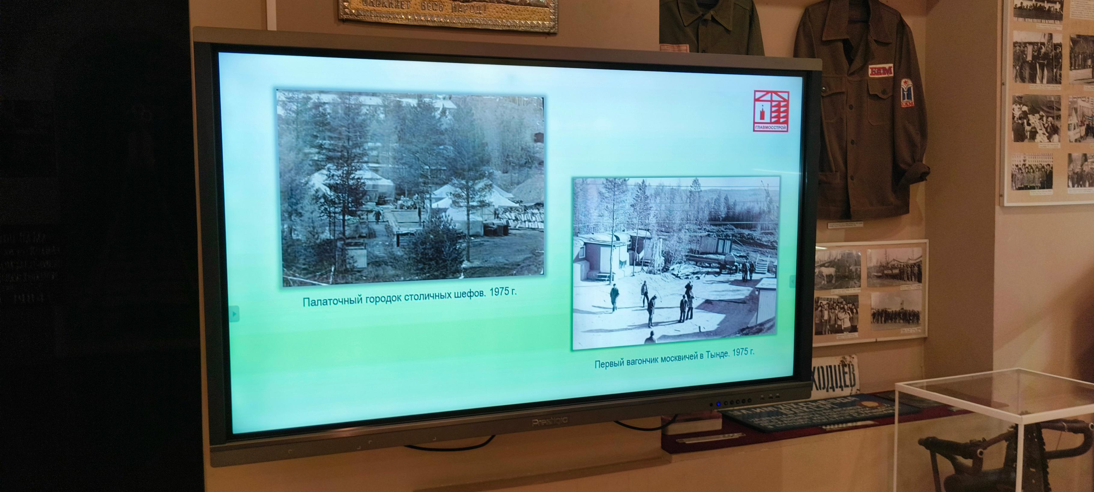 На выставке демонстрируются славные страницы летописи столицы БАМа. В 2025 году городу Тынде исполняется 50 лет. Среди уникальных исторических экспонатов зритель увидит запечатлённые на фотоплёнку эпохальные события: сдача в эксплуатацию первой «девятиэтажки»; закладка фундамента больничного комплекса; сооружение эксклюзивного железнодорожного вокзала; посадка международной Аллеи Дружбы. Многочисленные воодушевлённые лица строителей предстанут на бесценных снимках: монтажники, сварщики, штукатуры, маляры, крановщики и другие – все они - созидатели Тынды, названной неслучайно когда-то «крайней точкой Москвы». 70 девятиэтажных домов, 4 шестнадцатиэтажных дома, 11 детских садов, 6 школ, торгово-общественный центр, больничный комплекс, баня с бассейном – вот далеко не полный перечень объектов, возведённых московскими строителями в Тынде. Управление строительства Главмосстроя в районе станции Тында – генеральный застройщик столицы Байкало-Амурской магистрали, создатель уникального архитектурного облика города. Посмотреть выставку можно в терминалах музея истории БАМа, а также по ссылкам в сети интернет: https://rutube.ru/video/0b705a8627b236f7205ab31106eb1c3e/ https://drive.google.com/file/d/1dC8QibIrzWvyOscWT5OLy0hTiRKrSuJ0/view?usp=drive_link