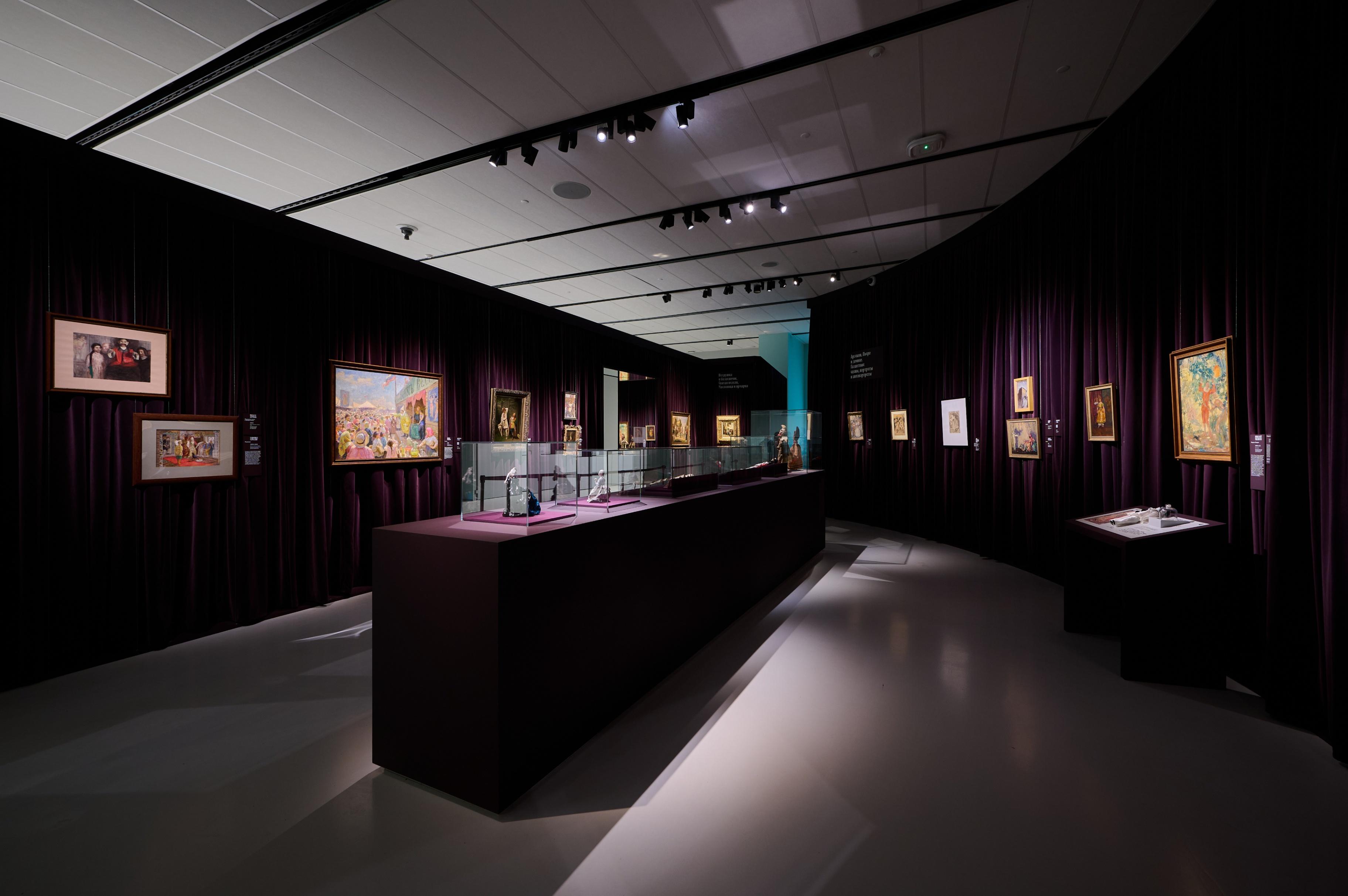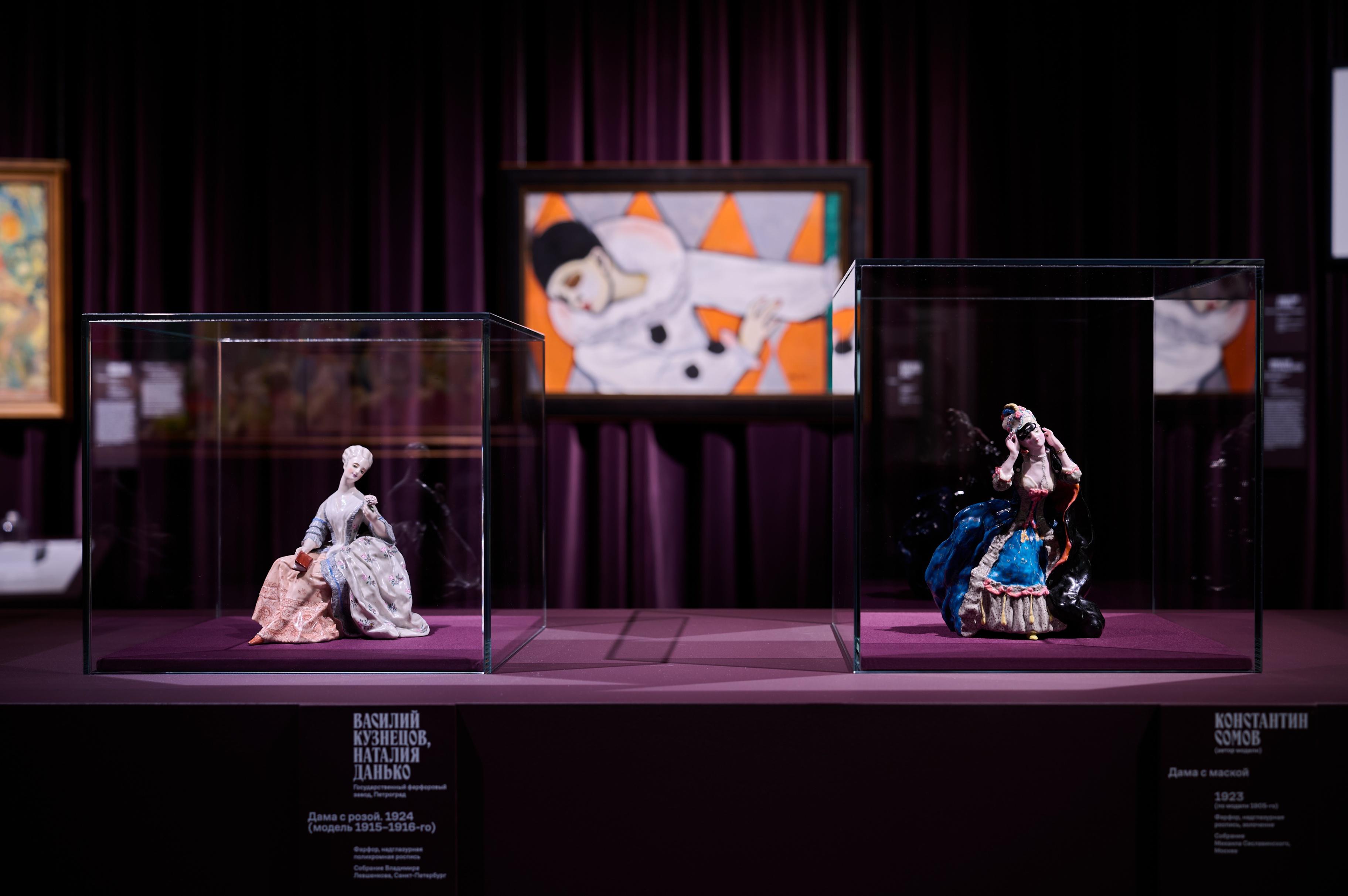 Настроение юбилейному году Музея русского импрессионизма задает выставка «Под маской» — в залах развернулась панорама карнавалов и маскарадов XIX и XX веков. Работы Владимира Маковского, Сергея Судейкина, Сергея Виноградова, Абрама Архипова и других художников представляют выразительные мгновения придворных балов, уличных гуляний и домашних костюмированных праздников. Мистическую атмосферу карнавального мира подчеркивает пространство, оформленное архитектурным бюро Project Eleven совместно с театральной художницей Ксенией Кочубей.Выставка охватывает целое столетие — с1830‑х по1930‑е годы. Рассказ начинается с раздела с пушкинским названием «Ветошь маскарада» и откроется эпохой НиколаяI — большого любителя маскарадов и эффектных костюмов. Далее перед зрителем появляются «турки», «гишпанцы» и «арапы», Татьяна и Онегин, скоморохи и петрушки, а также придворные фрейлины в «русских костюмах». Так раскрывается широкий диапазон маскарадных ролей, обязанных своим появлением литературе и истории, географии и этнографии. Отдельный блок посвящен русскому стилю, принимавшему различные формы на протяжении двух столетий. Апогеем его развития стали знаменитые придворные балы XIX–XX веков, и особенно бал 1903 года в честь 290-летнего юбилея дома Романовых. Посетители увидят созданный для этого празднества кокошник великой княгини Ксении Александровны из собрания Омского государственного историко-краеведческого музея.На экранах в залах музея ожили архивные фотоснимки участников праздничных вечеров прошлых столетий. Помимо них в оформлении выставки присутсвуют тканевые занавесы и зеркала, без которых не обходится ни одна бальная зала. А в силуэтах теней скрываются герои спектакля «Маскарад» Театра на Таганке. Записанные специально для экспозиции сцены из театральной премьеры 2025 года также встречают посетителей на первом этаже музея.Феномен маскарадов раскрывают 139 произведений из 67 музейных и частных собраний. Это живопись и графика, а также предметы декоративно-прикладного искусства: статуэтки, куклы, веера, маски с кружевом, кокошники, напоминающие о праздничных образах.