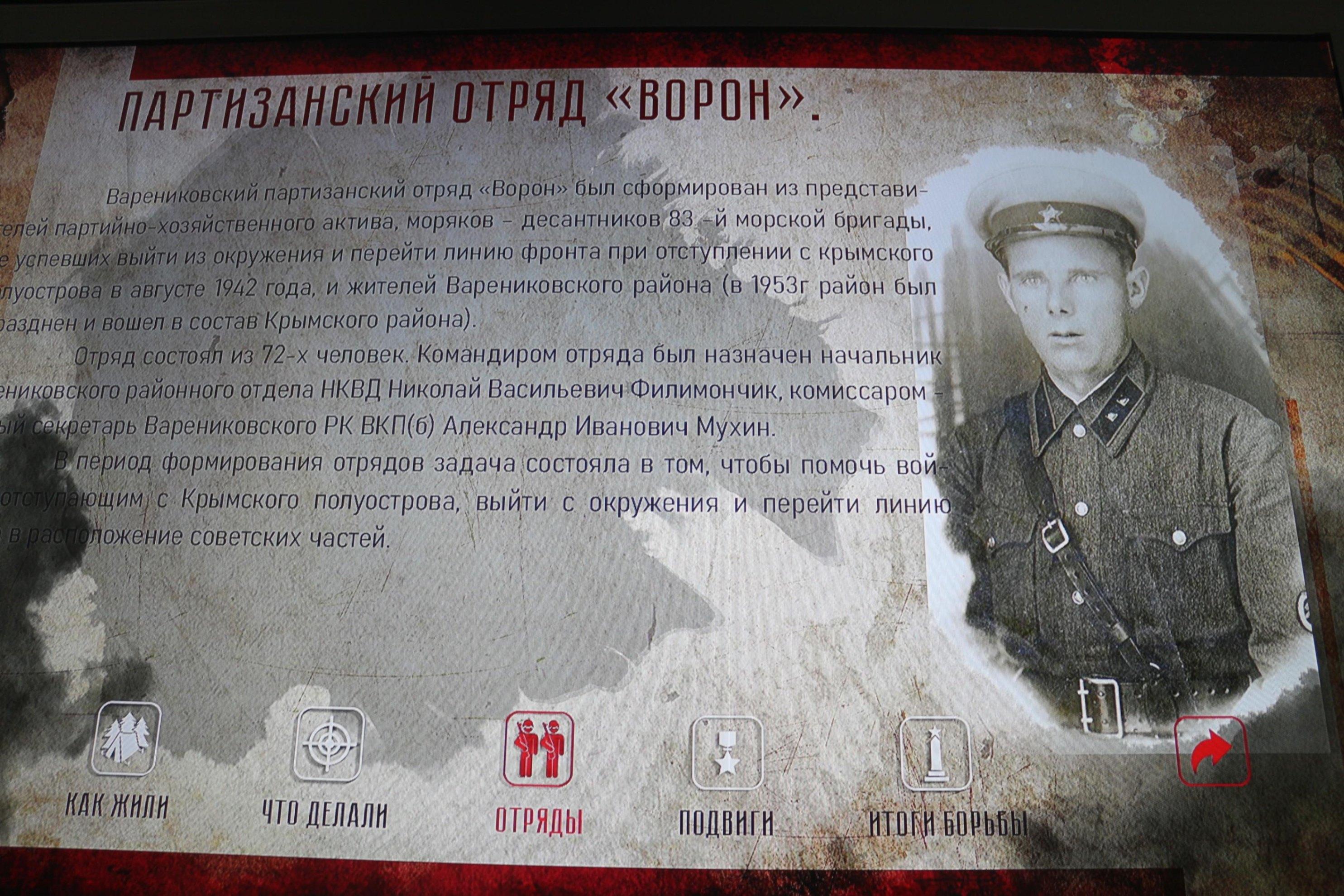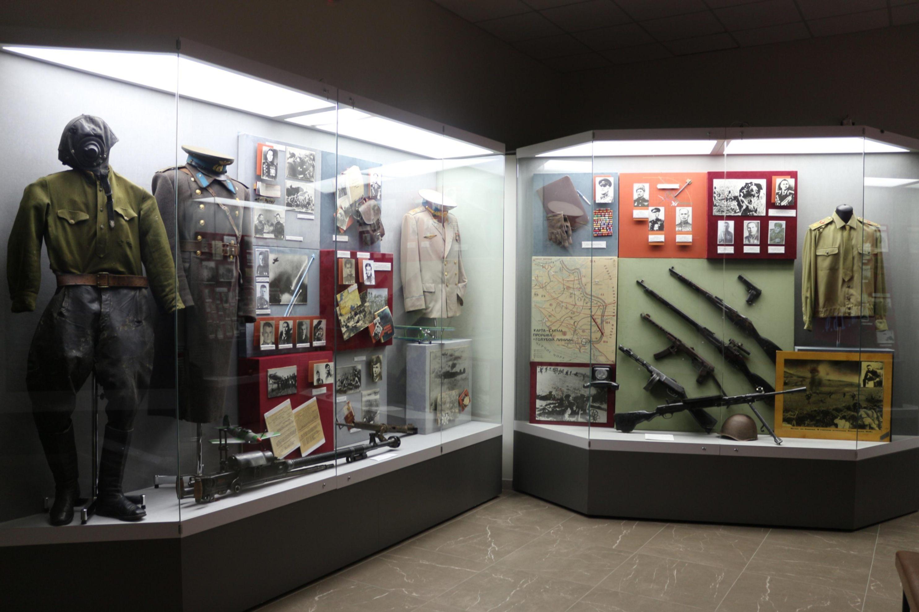 К 80-летию Победы в Великой Отечественной войне в музее работает выставка. В обновленной экспозиции представлена уникальная диорама, где воссоздается картина боевых действий Красной армии в мае 1943 года на главенствующей высоте Крымского района 121,4. В зале находится оружие периода Великой Отечественной войны, документы, а также фотографии участников боев. В музее хранятся уникальные экспонаты: личные вещи выдающегося полководца, маршала, четырежды Героя Советского Союза, кавалера двух орденов «Победа» Г. К. Жукова, маршала, дважды Героя Советского Союза, министра обороны СССР А. А. Гречко, главнокомандующего Военно-воздушными силами СССР, Героя Советского Союза К. А. Вершинина и генерал-лейтенанта авиации, дважды Героя Советского Союза В.А. Алексенко.