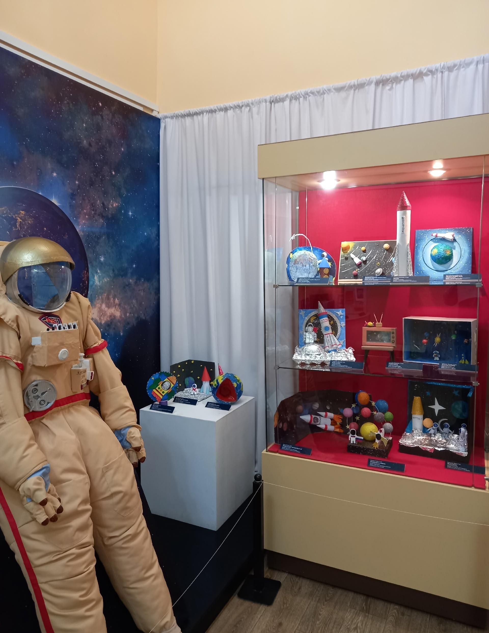 Традиционная выставка творческих работ победителей и призёров муниципального детского конкурса «Тайны космоса» открывается в преддверии Всемирного дня авиации и космонавтики. В 2026 году ребятам было предложено поработать над темой «Первые шаги человека в космос: полёт Юрия Алексеевича Гагарина». В конкурсе приняли участие 80 школьников и воспитанников детских садов г. Великого Устюга и Великоустюгского округа. Для экспонирования было отобрано 46 плоскостных и объёмных работ. Это рисунки, выполненные цветными карандашами и красками (акварель, гуашь), аппликации, поделки из различных материалов, самодельные интерактивные тематические папки. Дети с помощью красок и пластилина рассказали о событиях первого полёта в космос, поделились мечтами о собственных будущих путешествиях по просторам вселенной, о желании иметь друзей на других планетах, изучать звездные миры в телескоп. Экспозицию дополняет тематическая фотозона, которая даёт возможность юным посетителям выставки запечатлеть свой выход в открытый космос в скафандре. Участие в конкурсе и демонстрация лучших работ на выставке вызывает у детей желание глубже изучать космическую историю страны, представлять сверстникам её творческое осмысление.